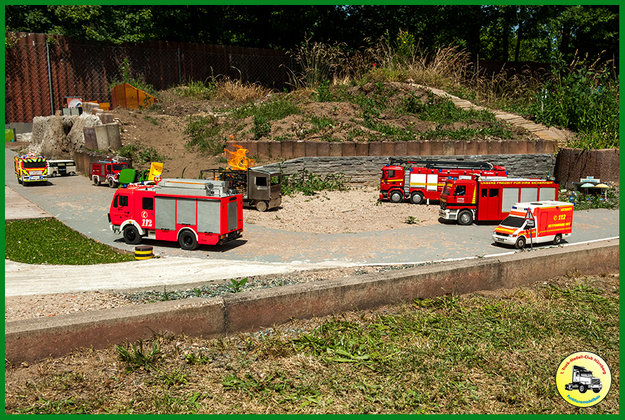 Röthenbach bei St. Wolfgang - Im Juni 2022 organisierten einige Vereinsmitglieder auf unserem Vereinsgelände ein internationales Treffen der RC Euro Fire Fighters. Ein Wochenende lang befand sich unser Außenparcours quasi im Daueralarmzustand, so viele Brände gab es zu löschen. Zwischendurch bekamen die Gäste noch die Möglichkeit, die Rennstrecken der Slot Car Gemeinde nebenan zu besuchen und ihnen wurdenoch eine Stadtführung durch das historische Nürnberg mit einem abschließendem Besuch der jahrhunderte alten Felsengänge geboten.