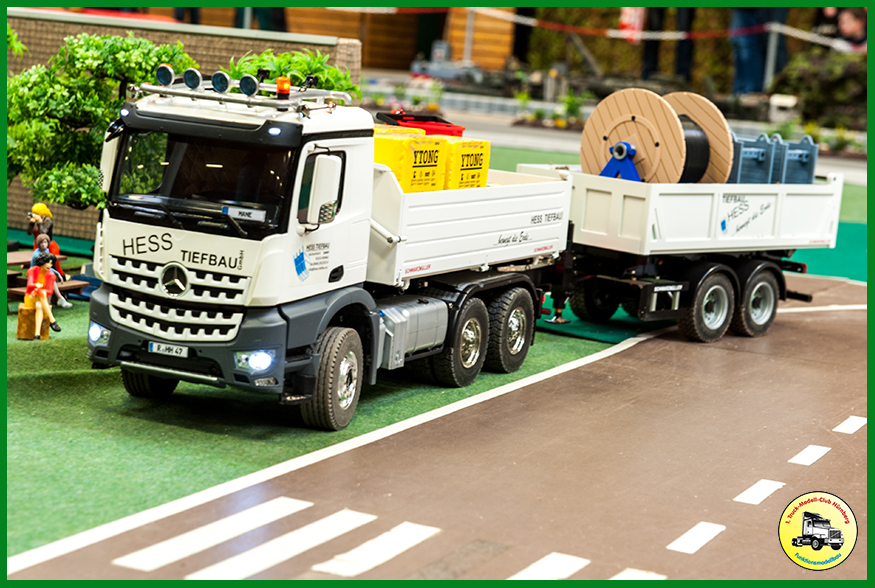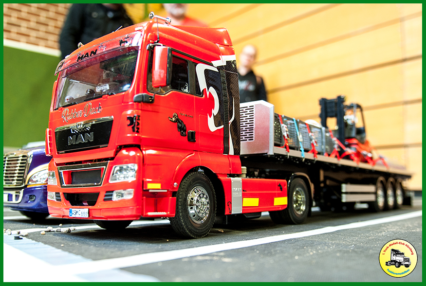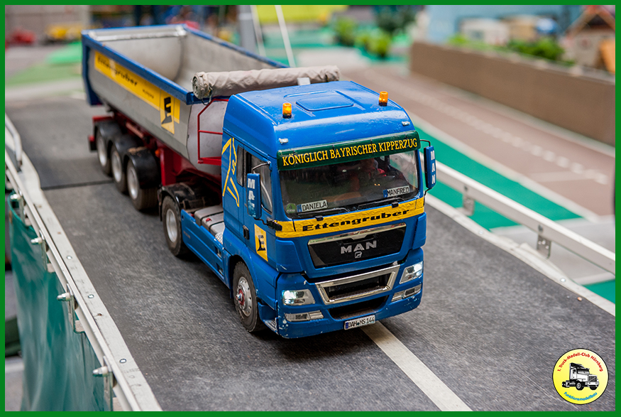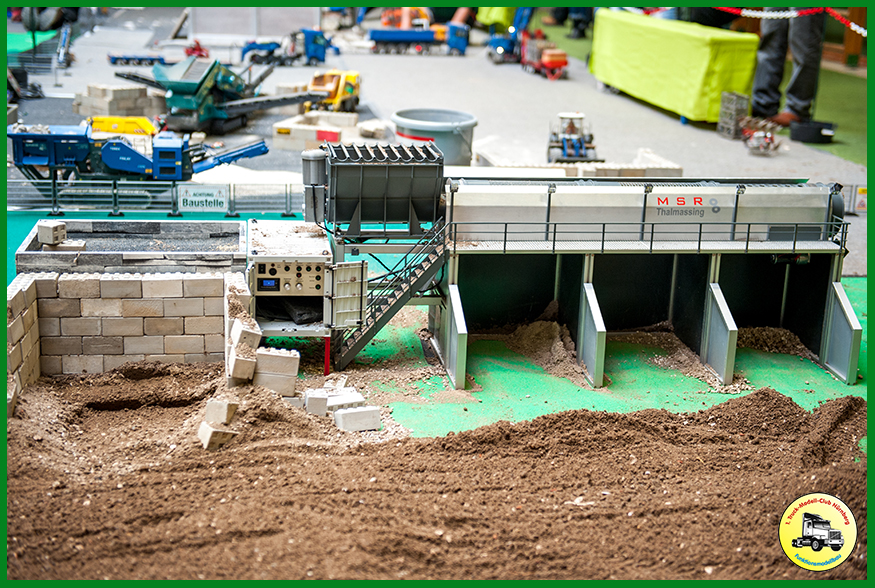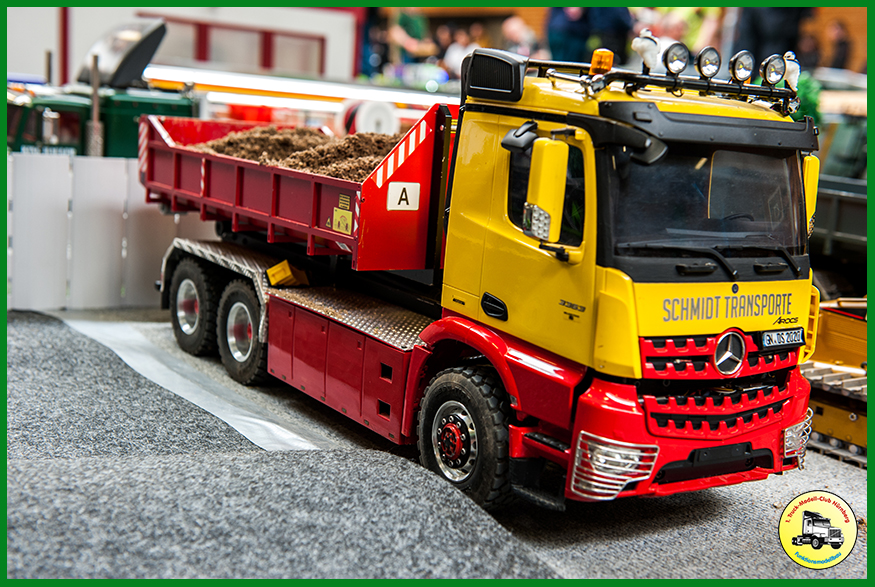 Sulzbach-Rosenberg - Mit mehr als 2.200 Besuchern konnte die Erlebnis Modellbau in Sulzbach-Rosenberg einen neuen Besucherrekord verzeichnen, auf der wir am 23. und 24. März in der Turnhalle der Krötensee Schule in Sulzbach-Rosenberg unser Trucks bei der Arbeit zeigten. Auf 740 m² hat unser 1. Truck-Modellbau-Club Nürnberg e.V. zusammen mit dem Veranstalter, dem Verein Schlacken e.V., dem Verein "Die Modellbauer Sulzbach-Rosenberg“ und den Modellbauern vom Wehrhistorischen Museum Röthenbach einen Parcours gestaltet. An beiden Tagen verstärkten zusätzlich rund 100 Gastfahrer den Fuhrpark.