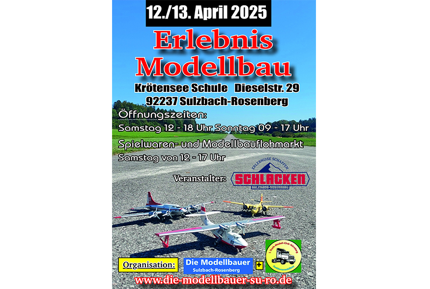 Sulzbach-Rosenberg - Am 12. und 13. April 2025 waren wir wieder auf der Erlebnis Modellbau in Sulzbach-Rosenberg vertreten und haben gemeinsam mit den Modellbauclubs aus Sulzbach-Rosenberg und Augsburg in der Dreifachturnhalle der Krötenseeschule einen riesigen Parcours gestaltet.