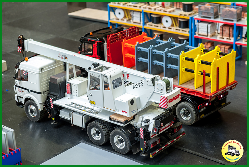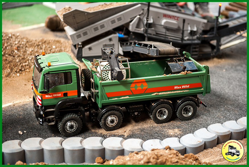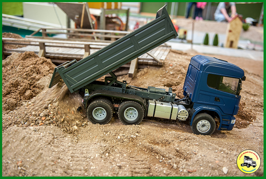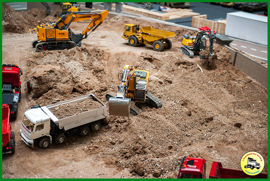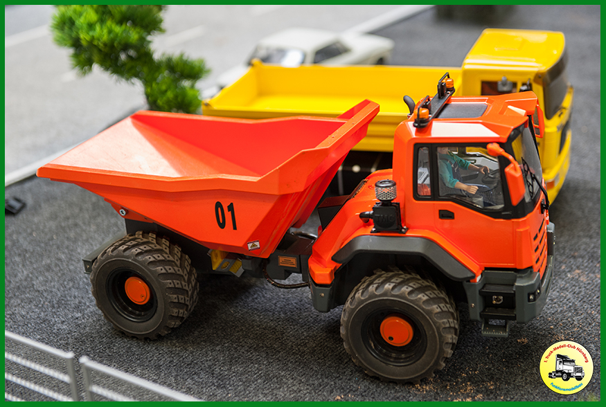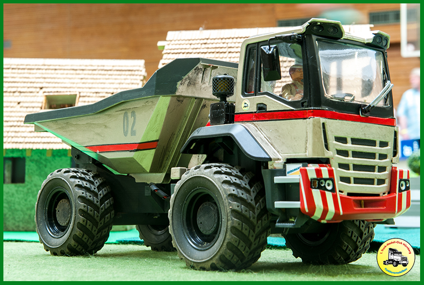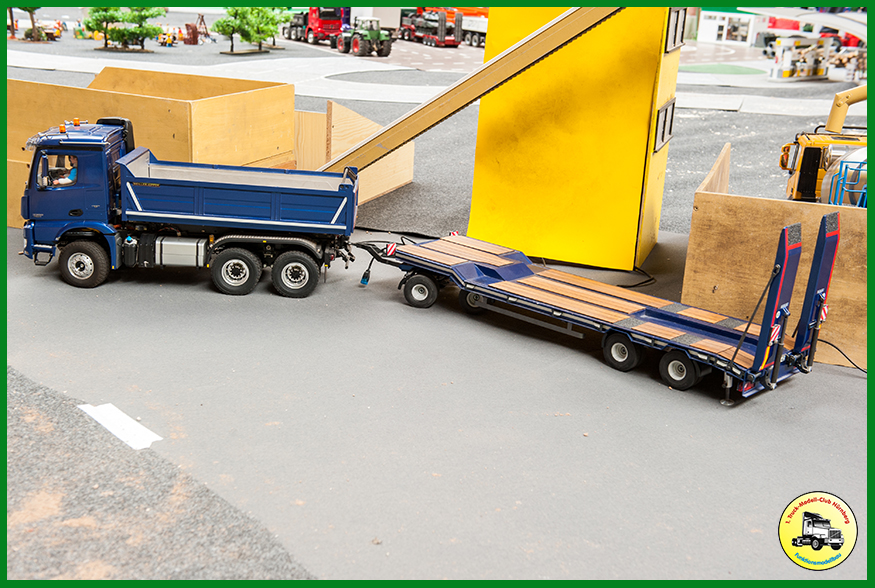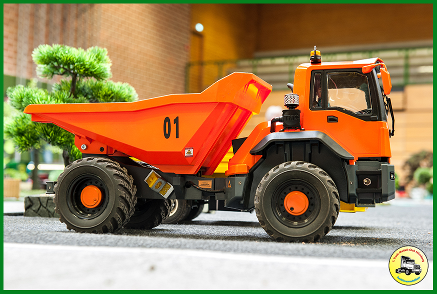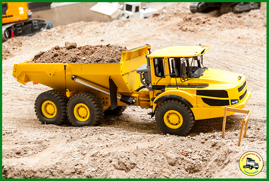 Als Neuerung hatten wir unsere neue Truck-Fahrschule dabei, die beim Publikum gut ankam. 150 Kinder erwarben dort einen Truck-Modell-Führerschein. Zudem waren die beiden ersten Exemplare des Bruder XD5000 Dumpers dabei, den wir in unserer CAD Gruppe so umbauen, dass wir ihn fernsteuern können. Weitere Exemplare sind im Bau.